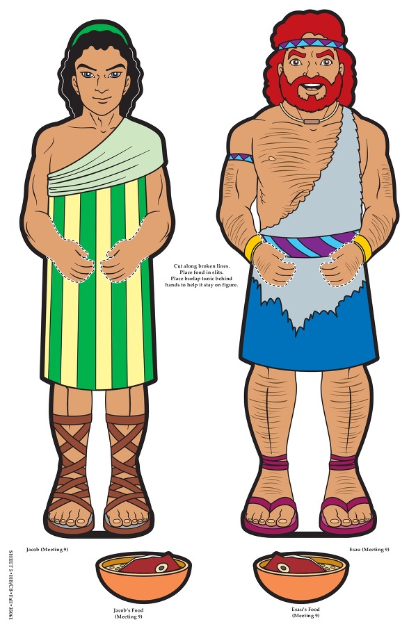 Narrator: “Do you fight with your brothers or sisters? I’m sure you get along with them ALL the time, don’t you? (wait for responses) Well, this story is about two brothers that were fighting each other even before they were born! Their names were Jacob and Esau.”